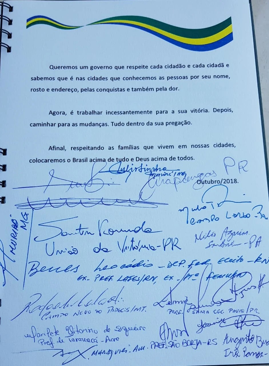 MANIFESTO DE APOIO DOS PREFEITOS E PREFEITAS AO CAPITÃO BOLSONARO