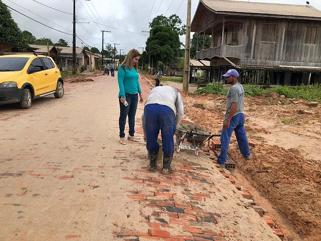 A Prefeita Marilete Vitorino vistoriou na manhã desta quinta feira, 27, a obra de pavimentação com tijolos que está sendo executada em um trecho da entrada da Avenida Avelino Leal, no bairro de Copacabana.